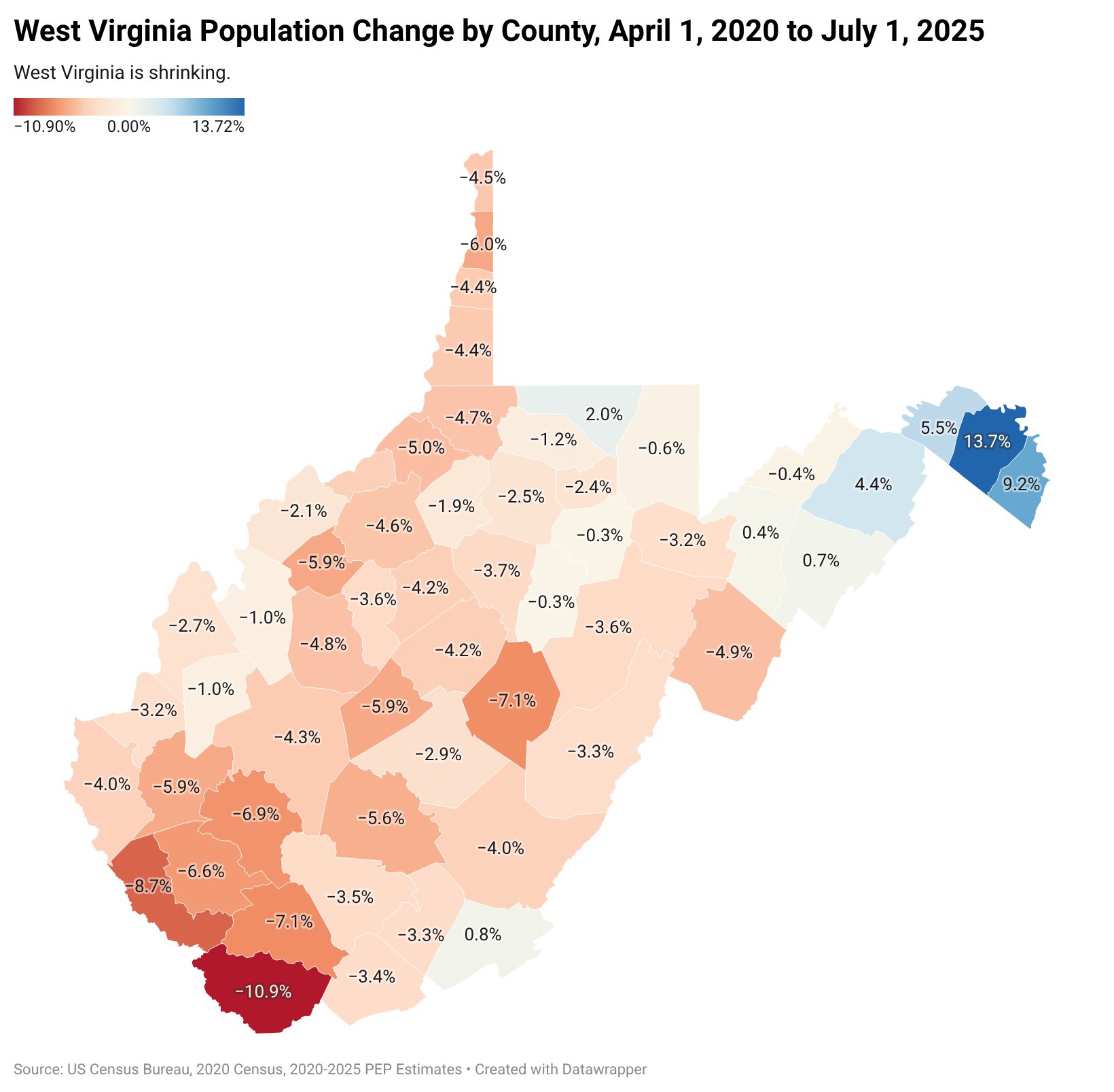 There’s a quiet but powerful story unfolding across the map of West Virginia. County by county, the colors tilt toward decline—some modest, some severe. Over just a few years, much of the state has lost population, with only a narrow band near the orbit of Washington, D.C. showing signs of growth. It raises a simple but important question: what does West Virginia look like 10 or 20 years from now? Fewer people often means fewer services, fewer employers, and fewer opportunities. And once a place begins to shrink, the forces reinforcing that decline can be hard to reverse. What we’re seeing isn’t just a snapshot—it’s a trajectory.